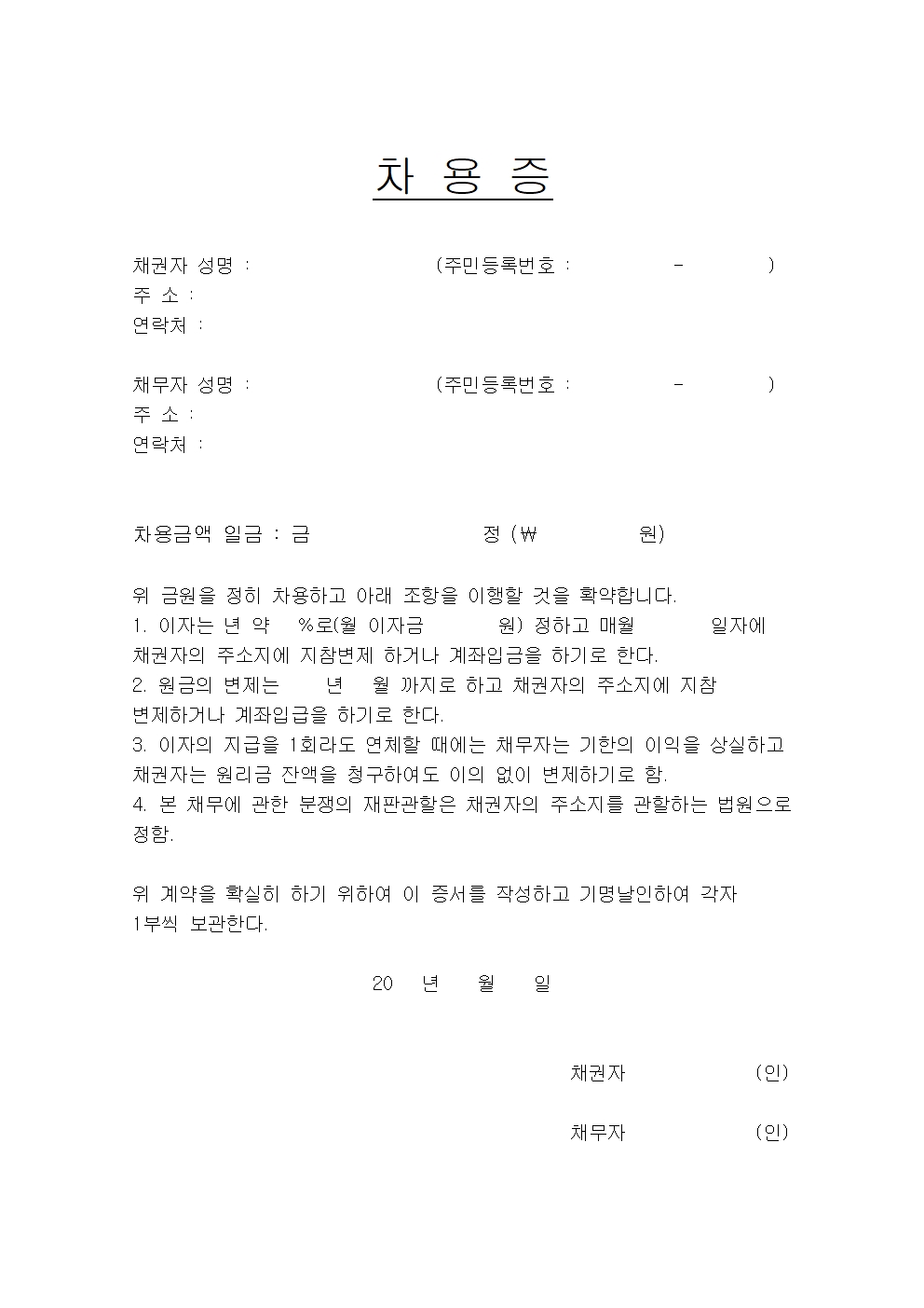 개인간 차용증 양식 다운로드 작성 방법 유의사항차용증 양식 모음 2024. 11. 15. 13:30