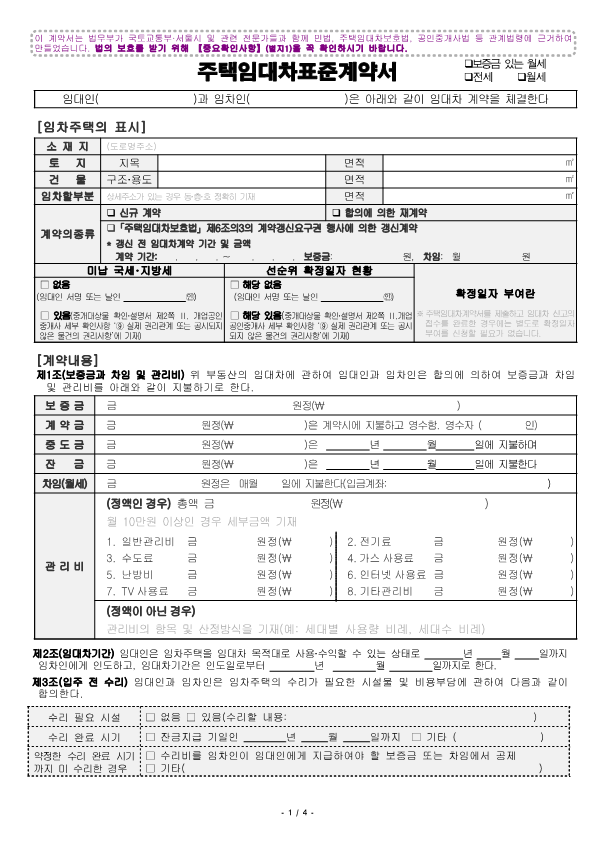 법무부의 '주택 임대차 표준 계약서' 사용은 의무는 아닌 점 참고하시기 바랍니다.